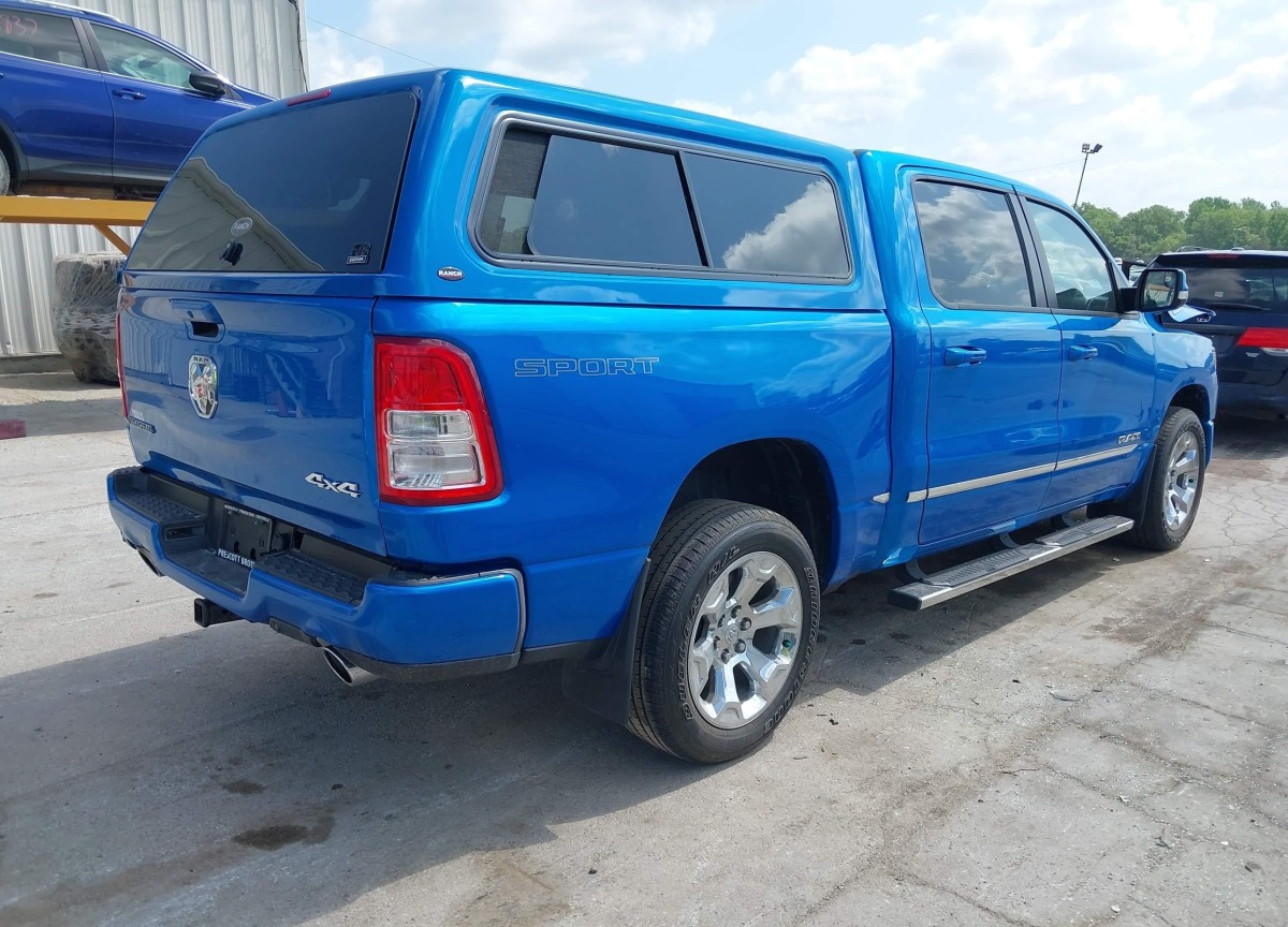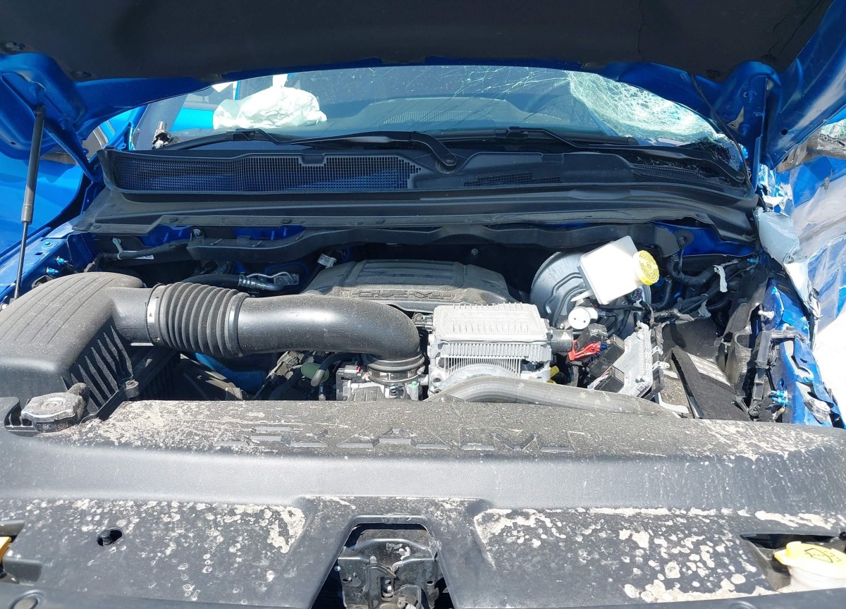 The Ram 1500 2022 Blue is equipped with a 5.7l v-8 vvt, 395hp engine. This power unit is known for its efficiency and reliability, and it is part of modern generation of engines designed to balance performance with fuel economy. According to the auction data, the vehicle was registered with only 34206 of mileage at the time of sale.