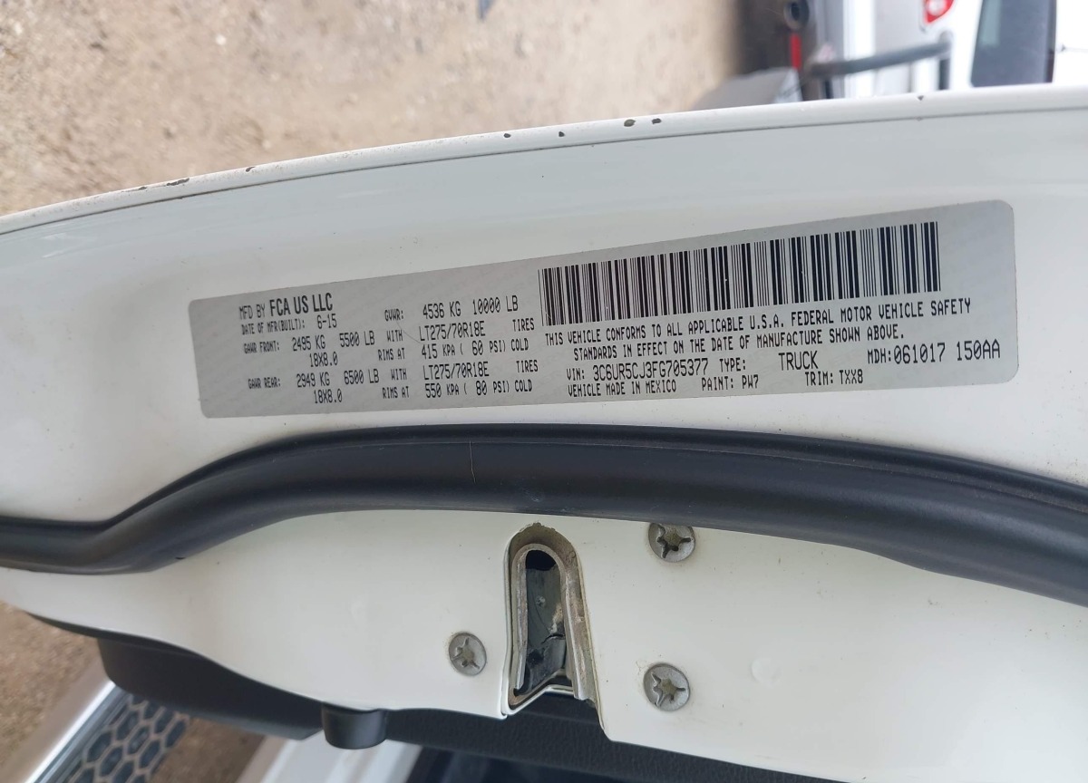 • VIN: 3C6UR5CJ3FG705377