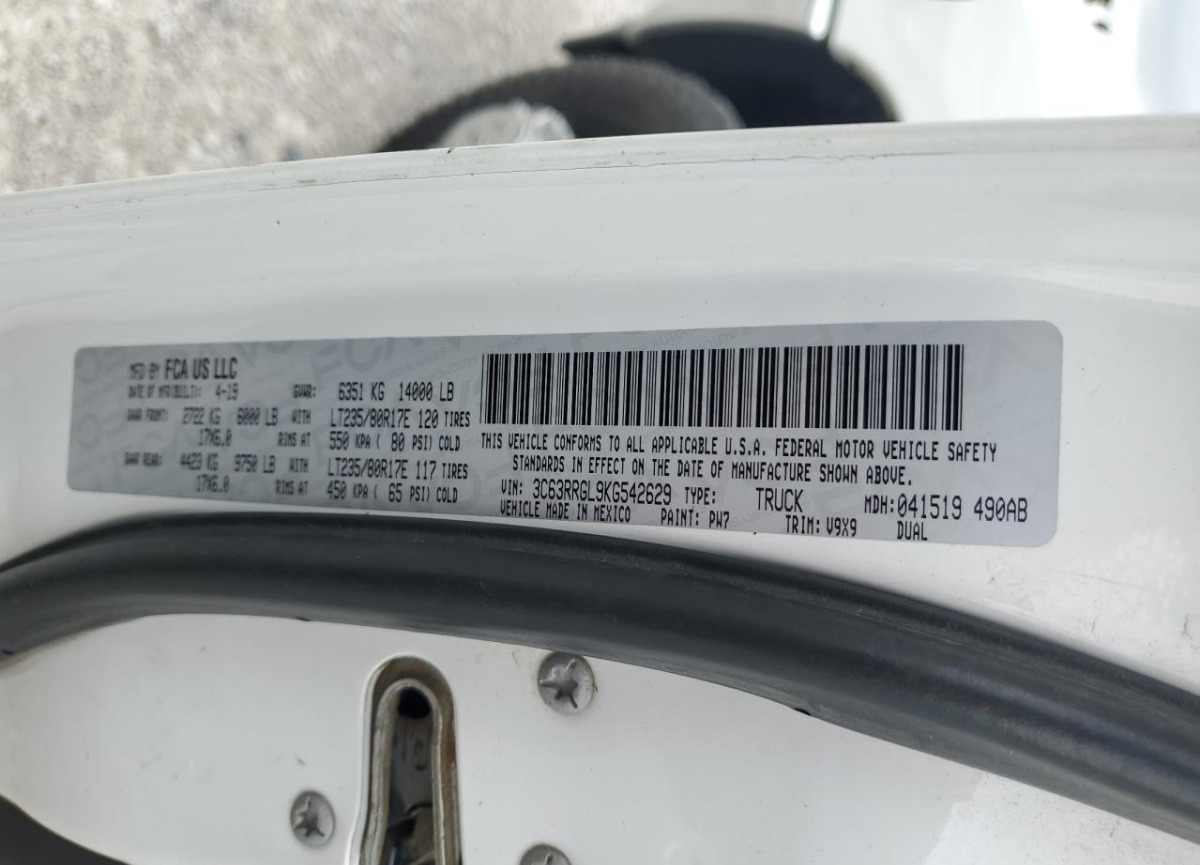 VIN:3C63RRGL9KG542629