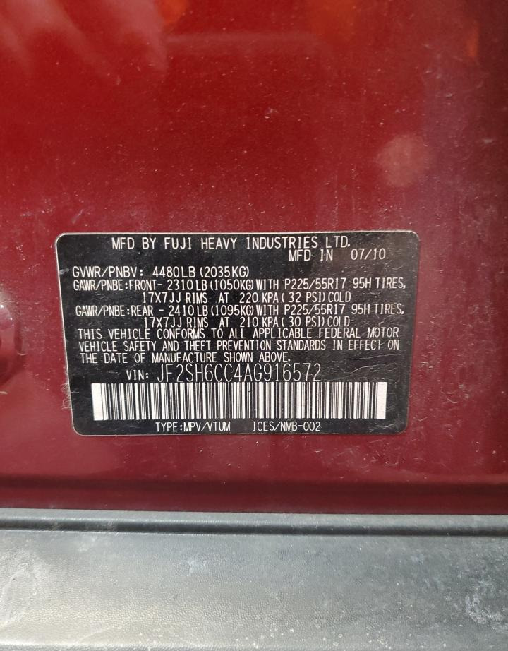 • VIN: JF2SH6CC4AG916572