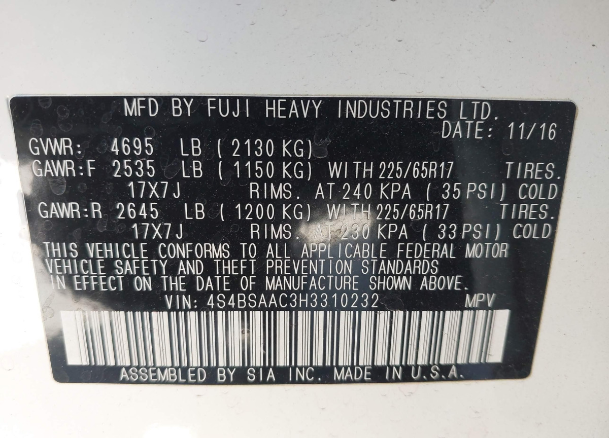 VIN:4S4BSAAC3H3310232