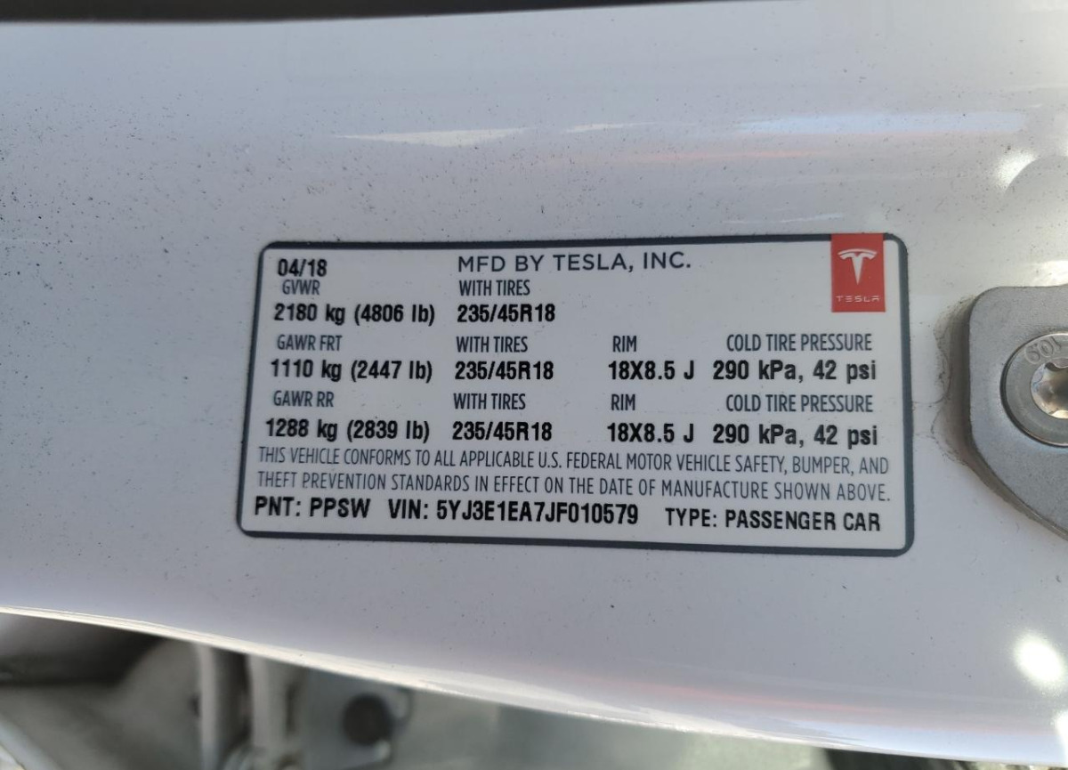 • VIN: 5YJ3E1EA7JF010579