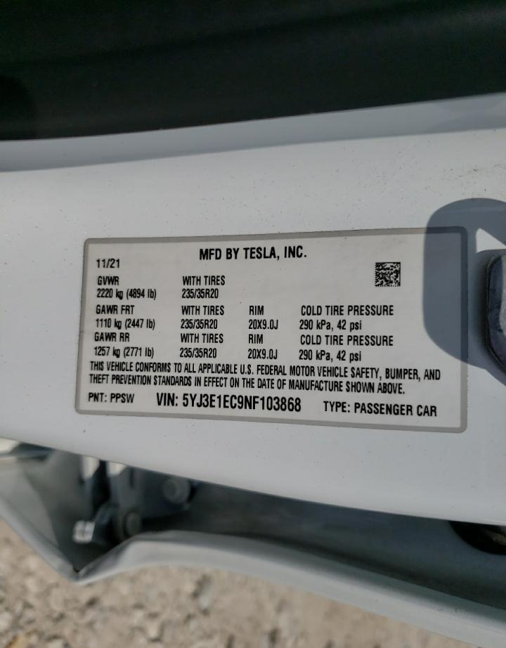 VIN:5YJ3E1EC9NF103868