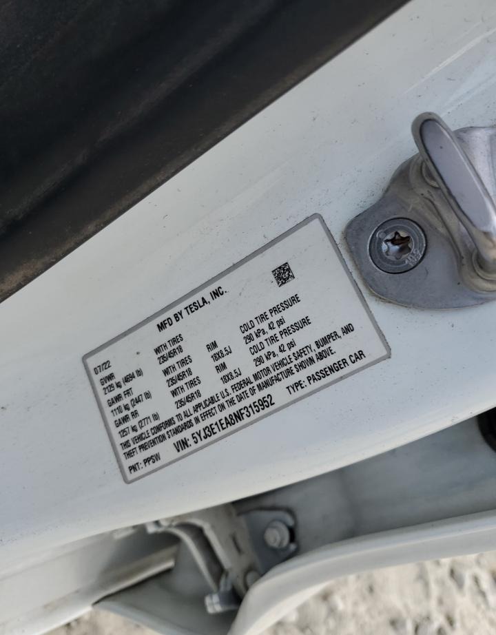 VIN:5YJ3E1EA8NF315952