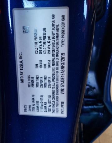 VIN:5YJ3E1EA8NF372619