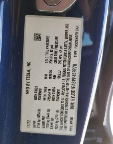VIN:5YJ3E1EA8PF459276