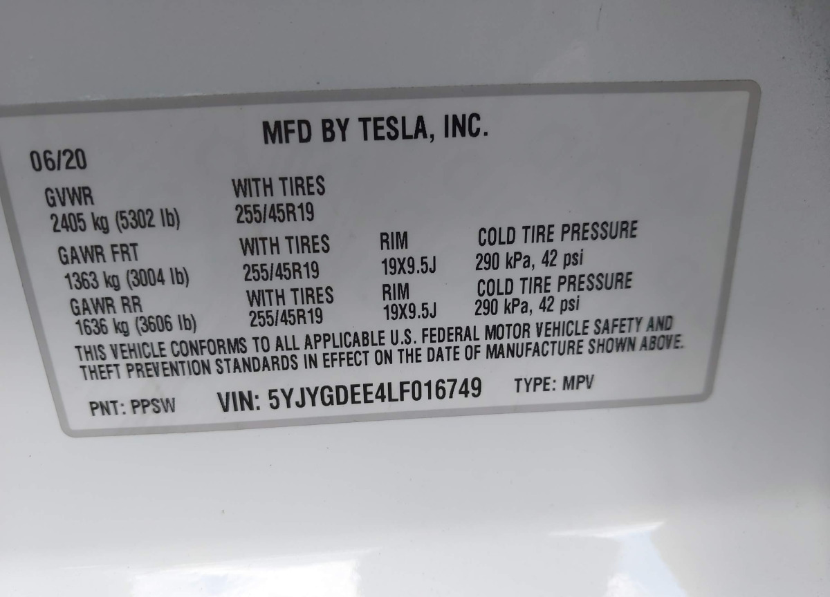 5YJYGDEE4LF016749 Tesla Model Y 2020 White – history, photos, price