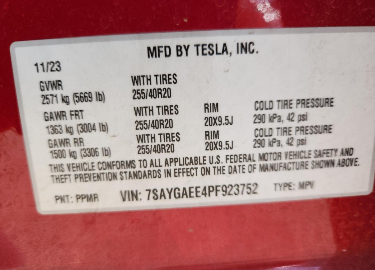 7SAYGAEE4PF923752 Tesla Model Y 2023 Red – history, photos, price