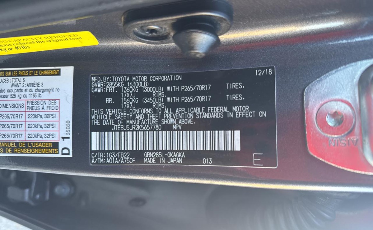 VIN:JTEBU5JR2K5657780