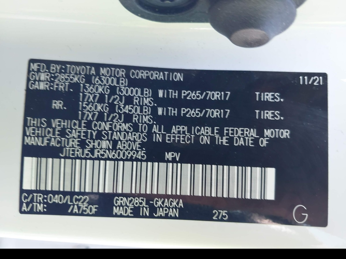 • VIN: JTERU5JR5N6009945