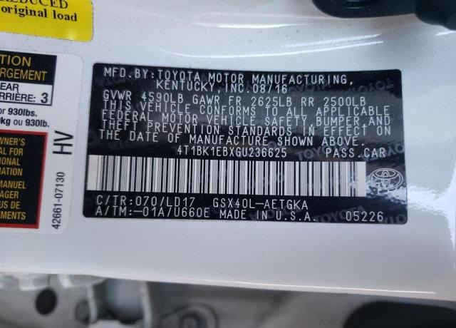 VIN:4T1BK1EBXGU236625
