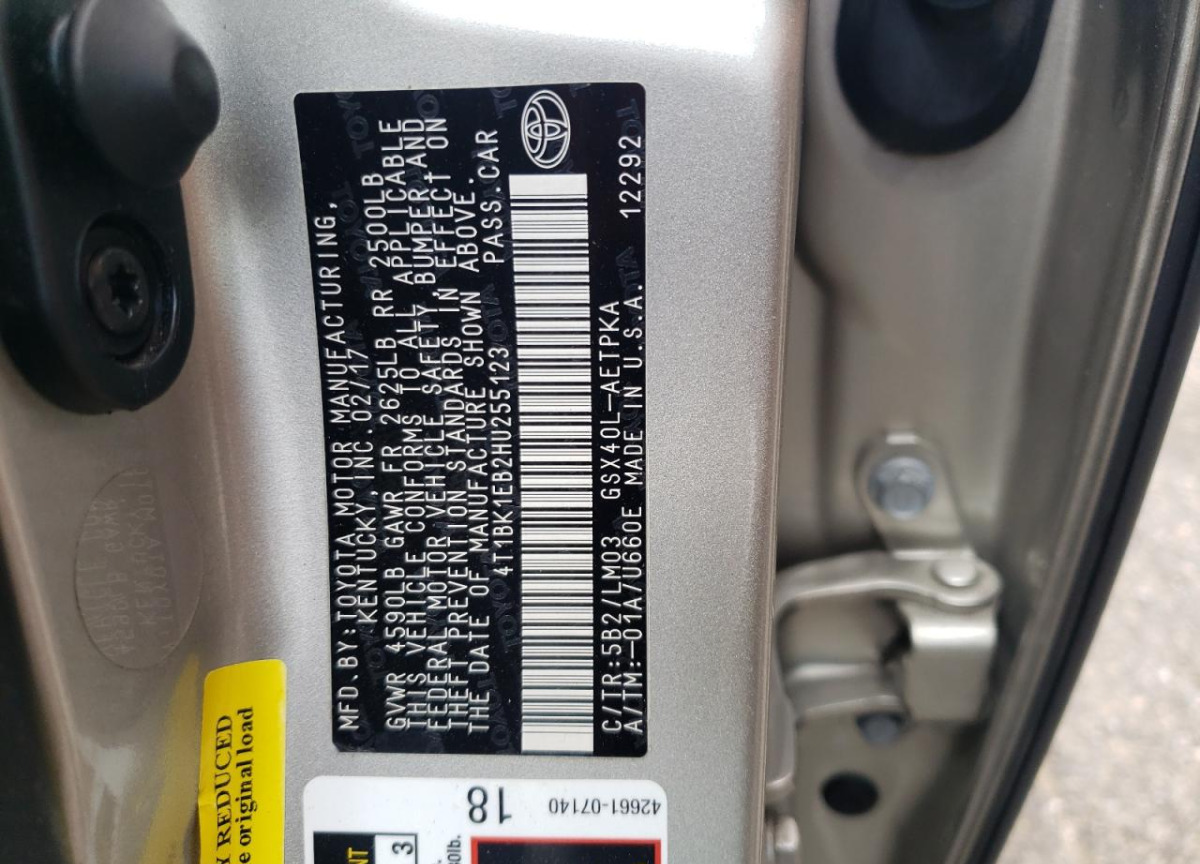 VIN:4T1BK1EB2HU255123