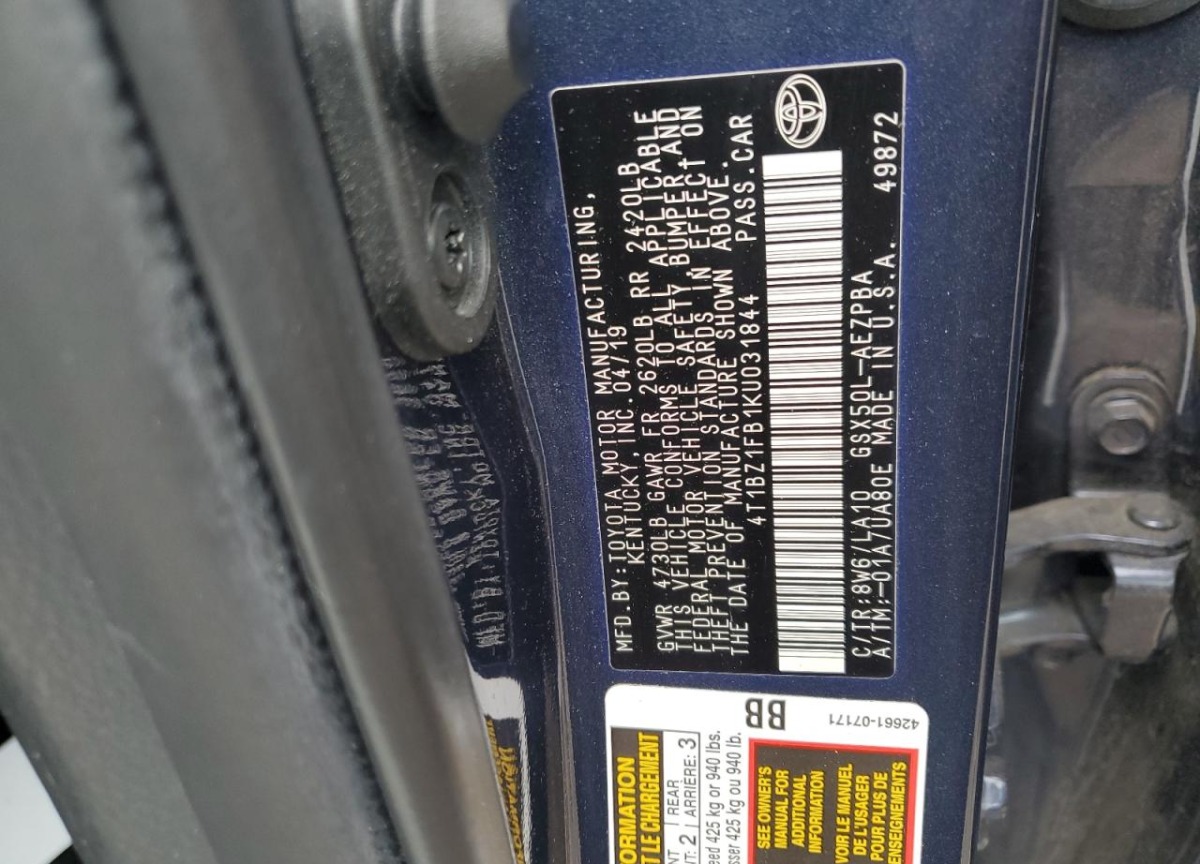 VIN:4T1BZ1FB1KU031844