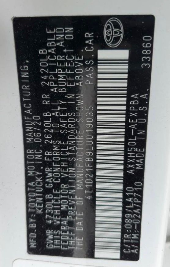 VIN:4T1D21FB9LU019035