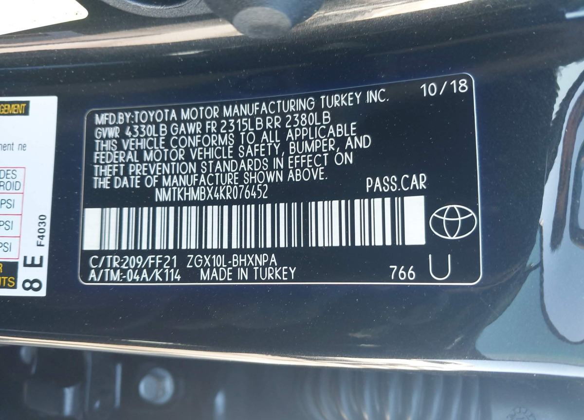 VIN:NMTKHMBX4KR076452