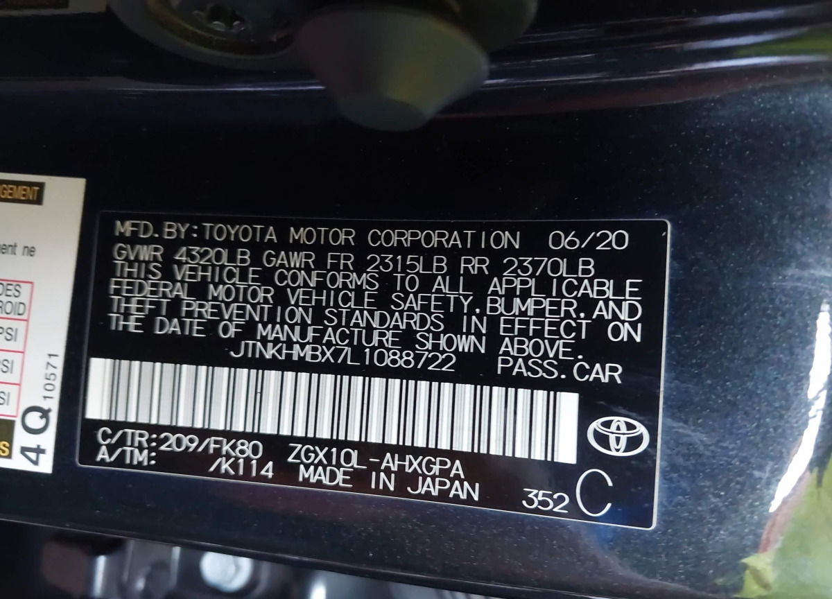 • VIN: JTNKHMBX7L1088722