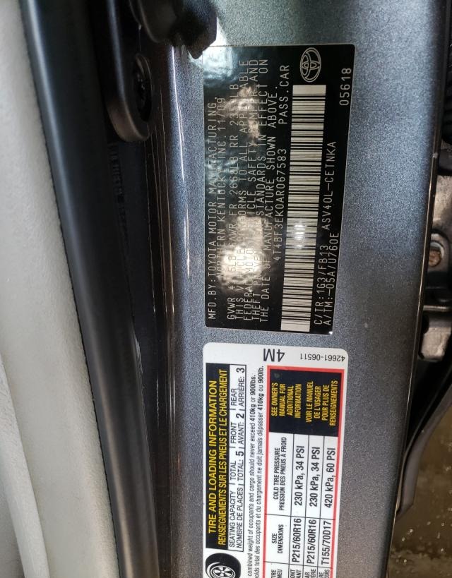 VIN:4T4BF3EK0AR067583