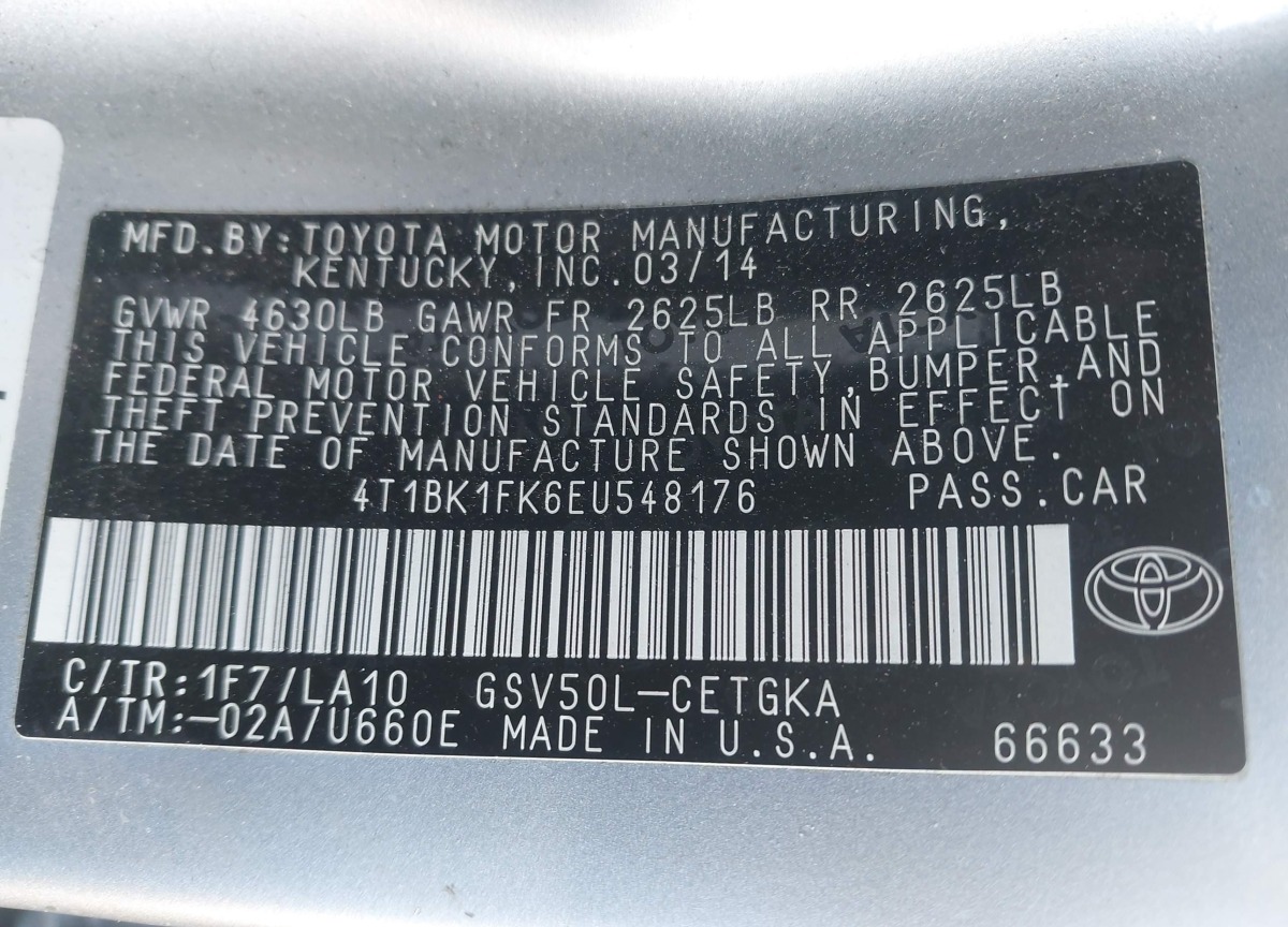 • VIN: 4T1BK1FK6EU548176
