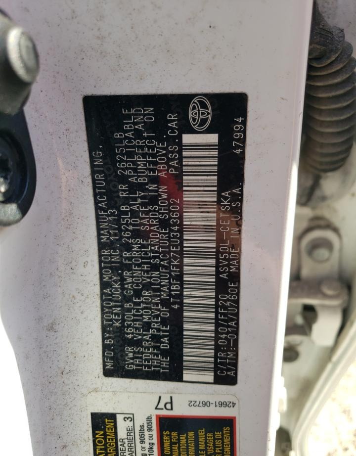 VIN:4T1BF1FK7EU343602