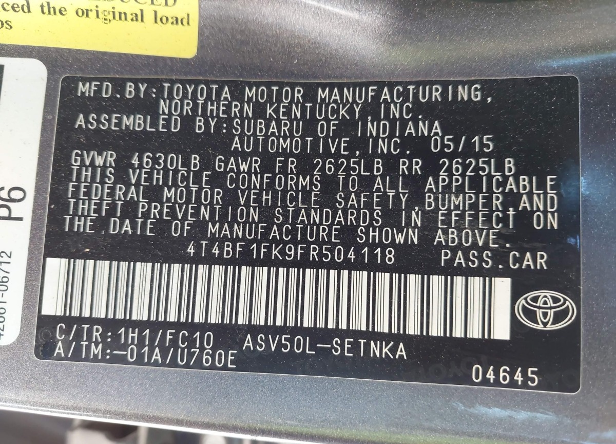 VIN:4T4BF1FK9FR504118