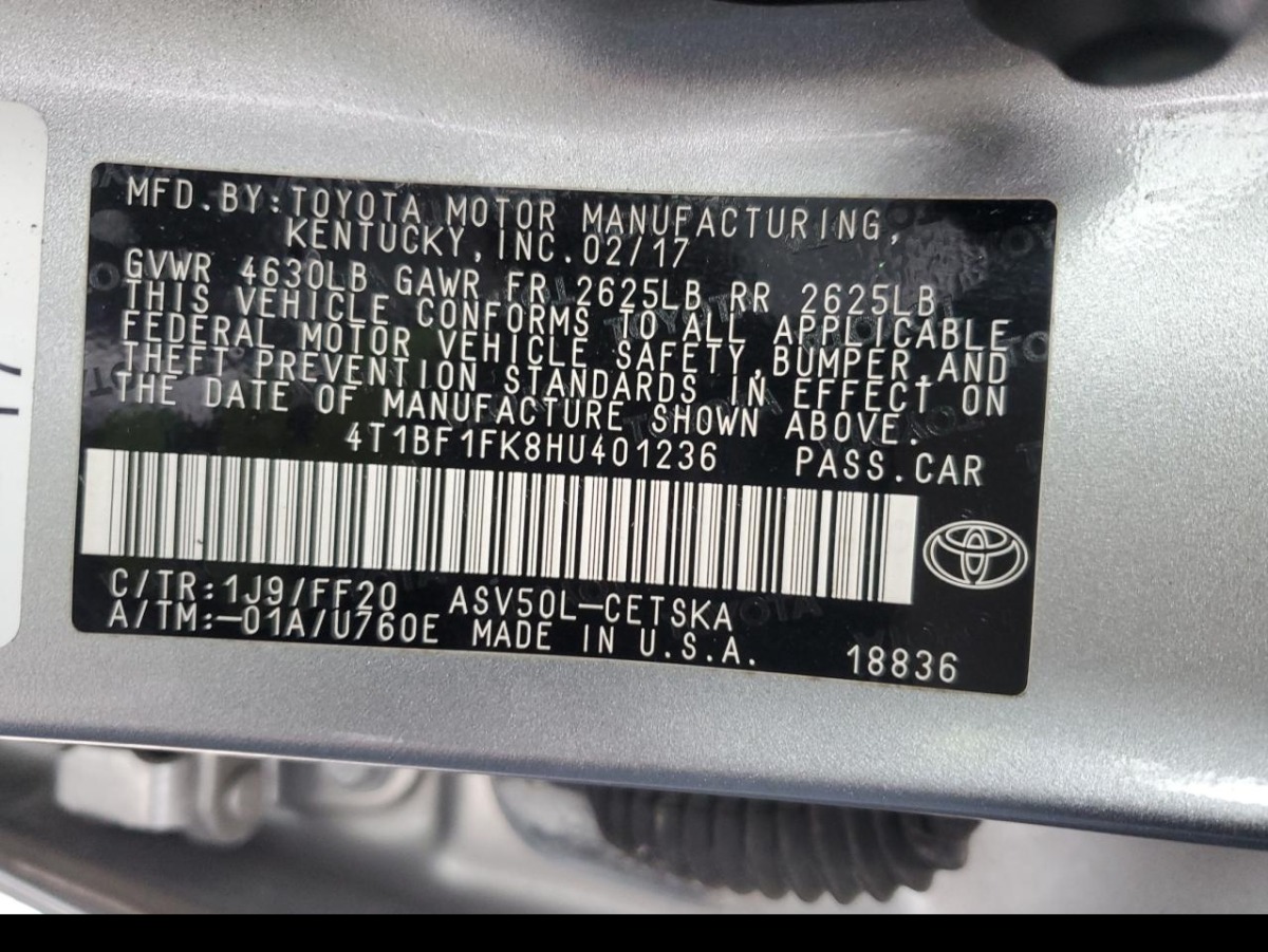 VIN:4T1BF1FK8HU401236