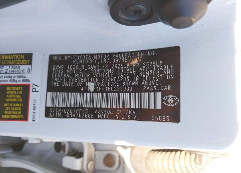 VIN:4T1BF1FK1HU333930