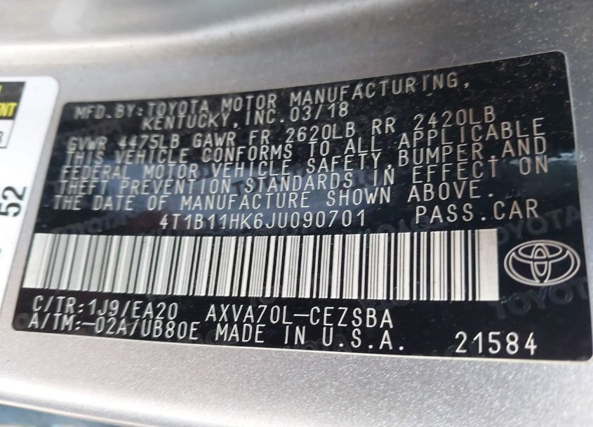 VIN:4T1B11HK6JU090701