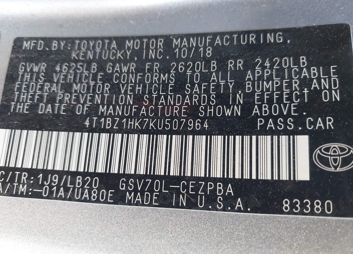 VIN:4T1BZ1HK7KU507964