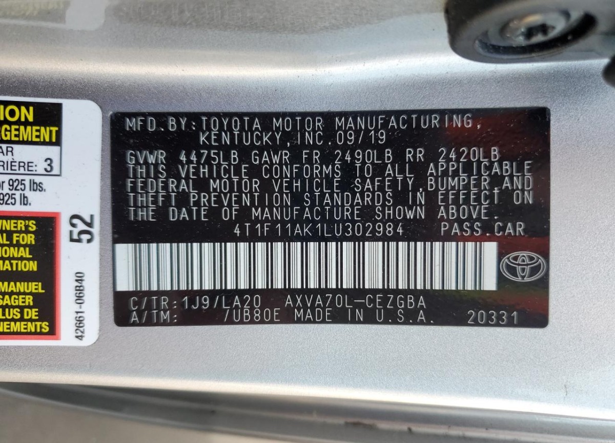 VIN:4T1F11AK1LU302984