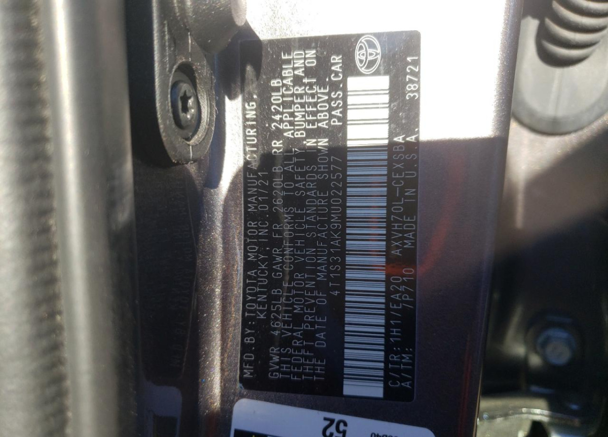 VIN:4T1S31AK9MU022577