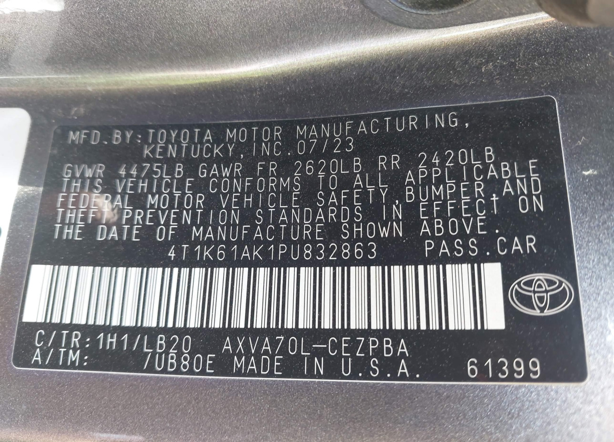 • VIN: 4T1K61AK1PU832863