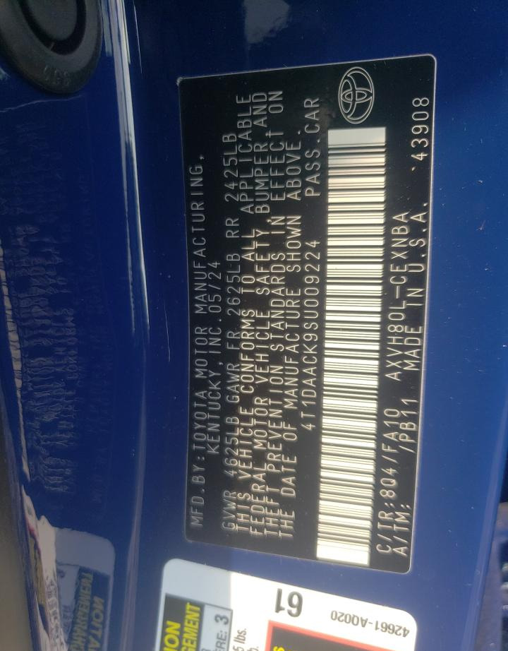 VIN:4T1DAACK9SU009224