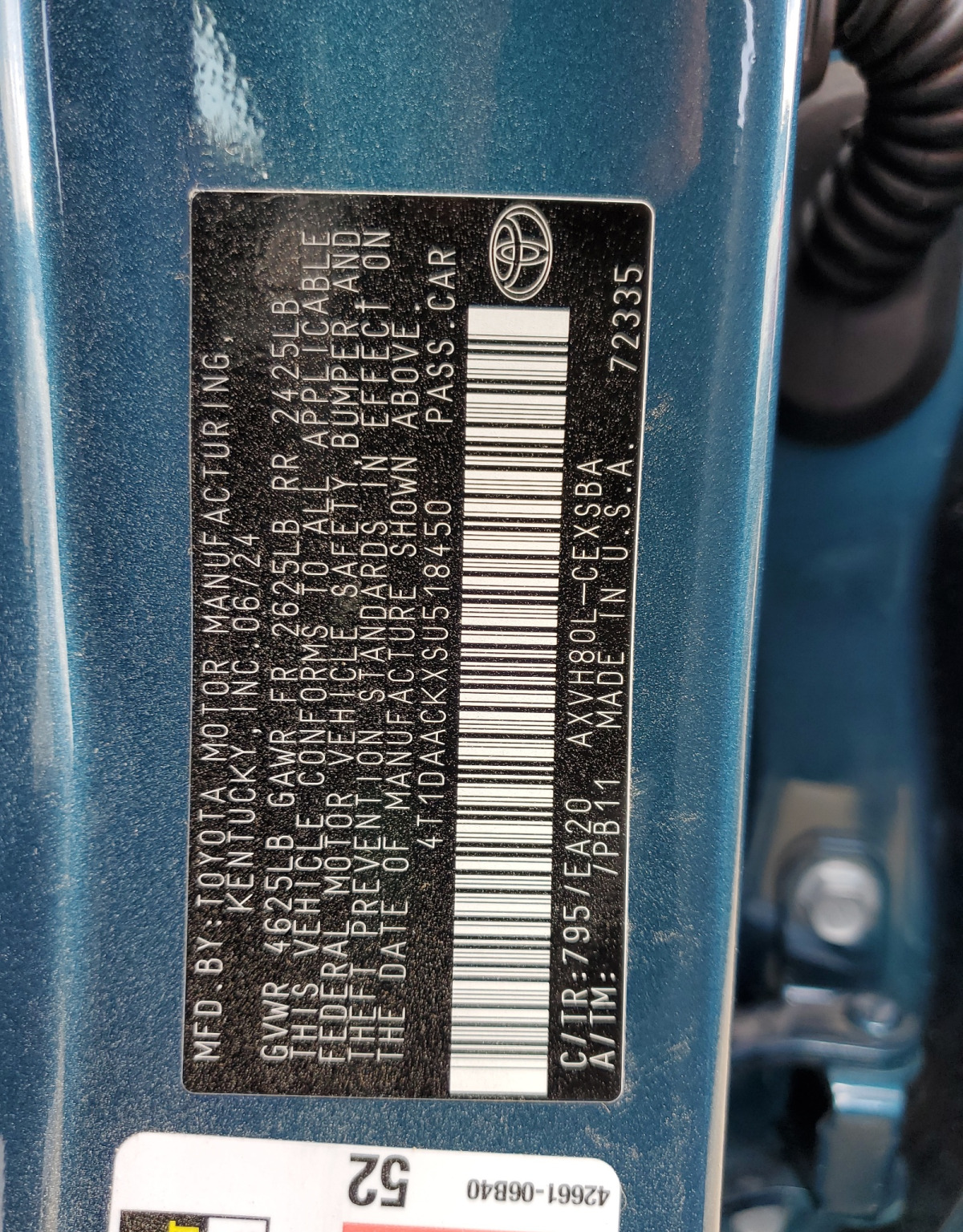 VIN:4T1DAACKXSU518450