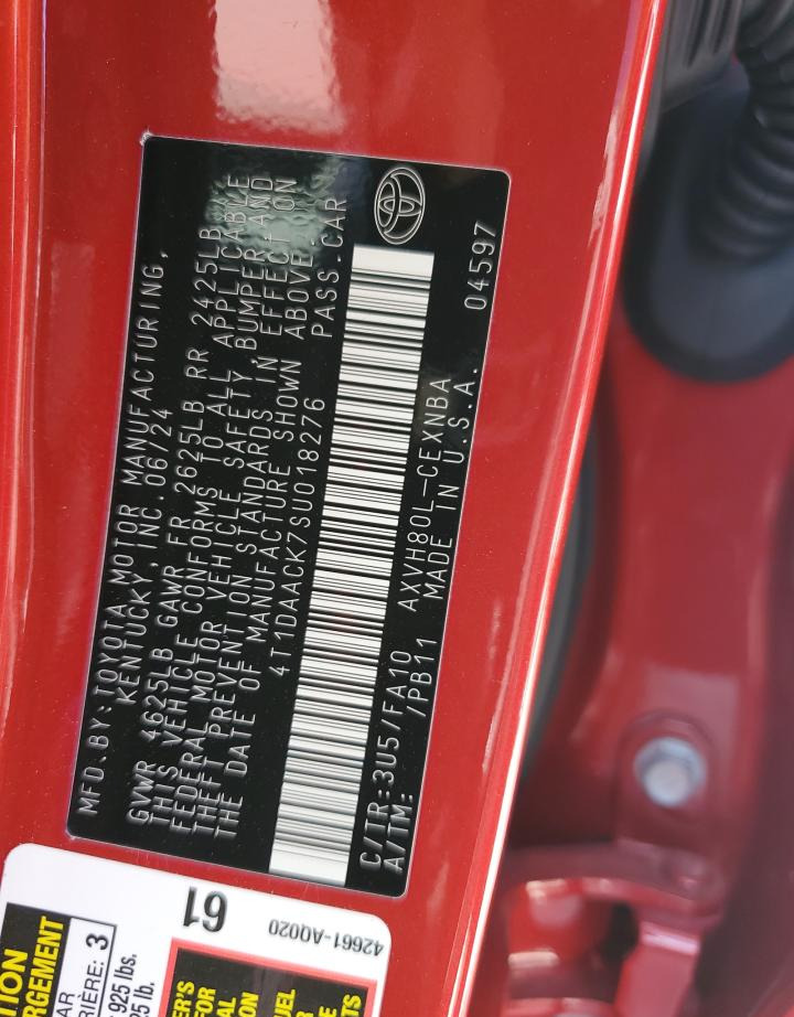 • VIN: 4T1DAACK7SU018276