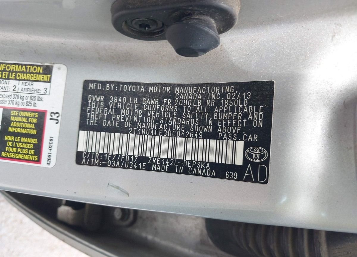 VIN:2T1BU4EE3DC042649