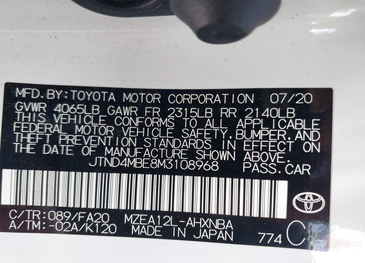 VIN:JTND4MBE8M3108968