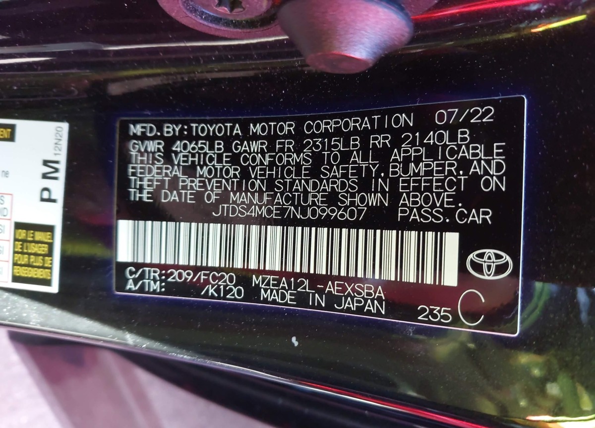 VIN:JTDS4MCE7NJ099607
