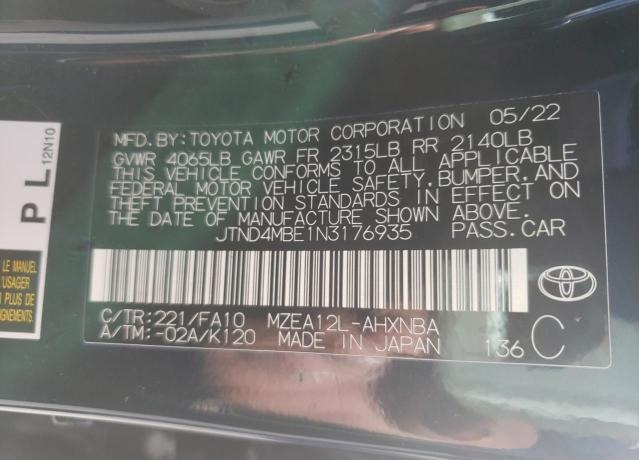 VIN:JTND4MBE1N3176935