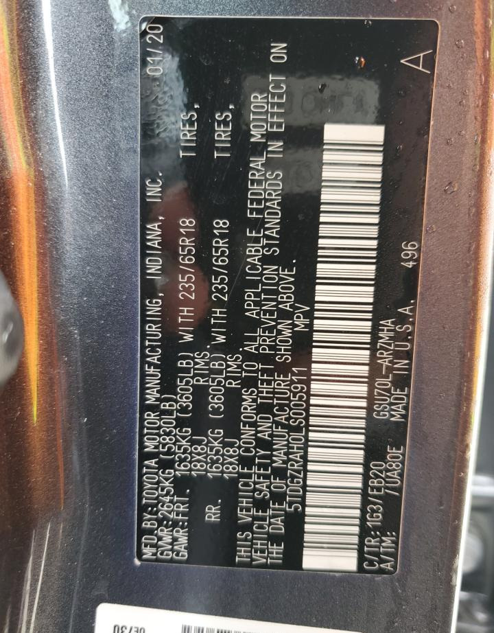 VIN:5TDGZRAH0LS005911