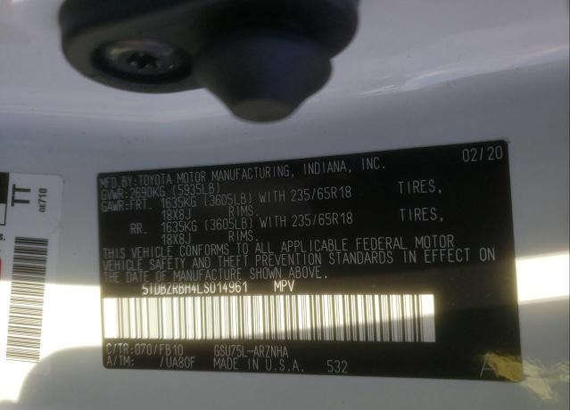• VIN: 5TDBZRBH4LS014961