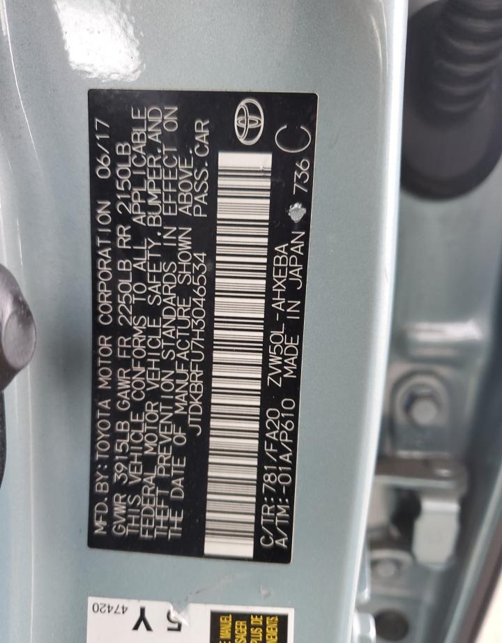 • VIN: JTDKBRFU7H3046534