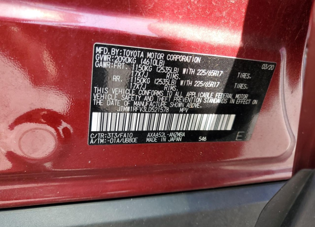 • VIN: JTMW1RFV3LD521578