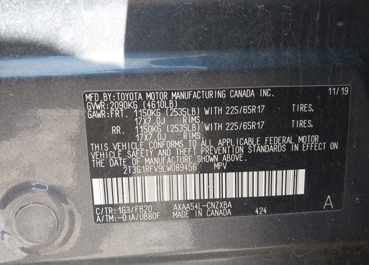 VIN:2T3G1RFV9LW089456