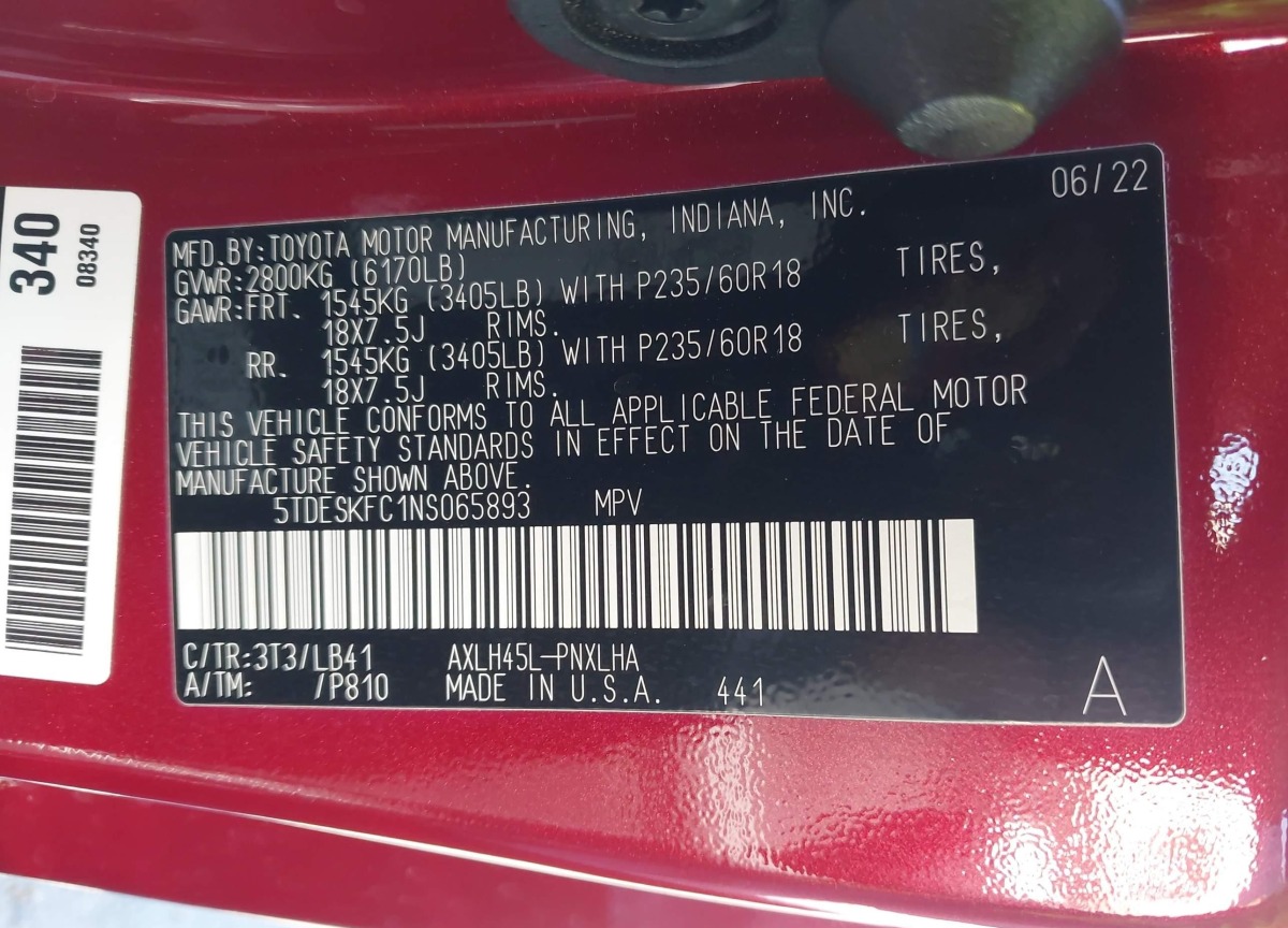 VIN:5TDESKFC1NS065893
