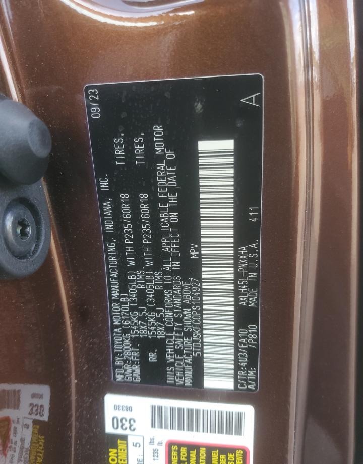 5TDJSKFC0PS104927 Toyota Sienna 2023 Brown – history, photos, price