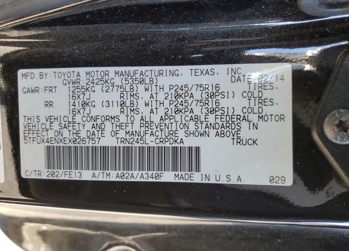 VIN:5TFUX4ENXEX026757