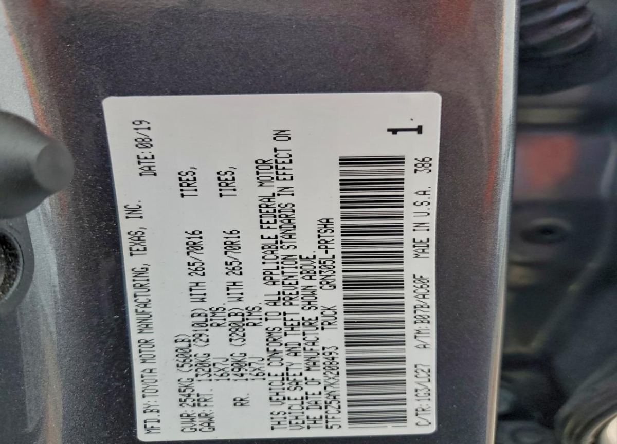 • VIN: 5TFCZ5AN7KX208493