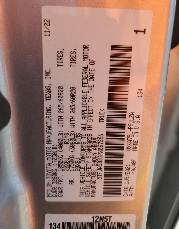 VIN:5TFJA5DB3PX067266
