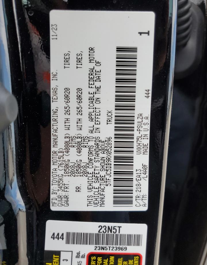 • VIN: 5TFJC5DB9RX052896