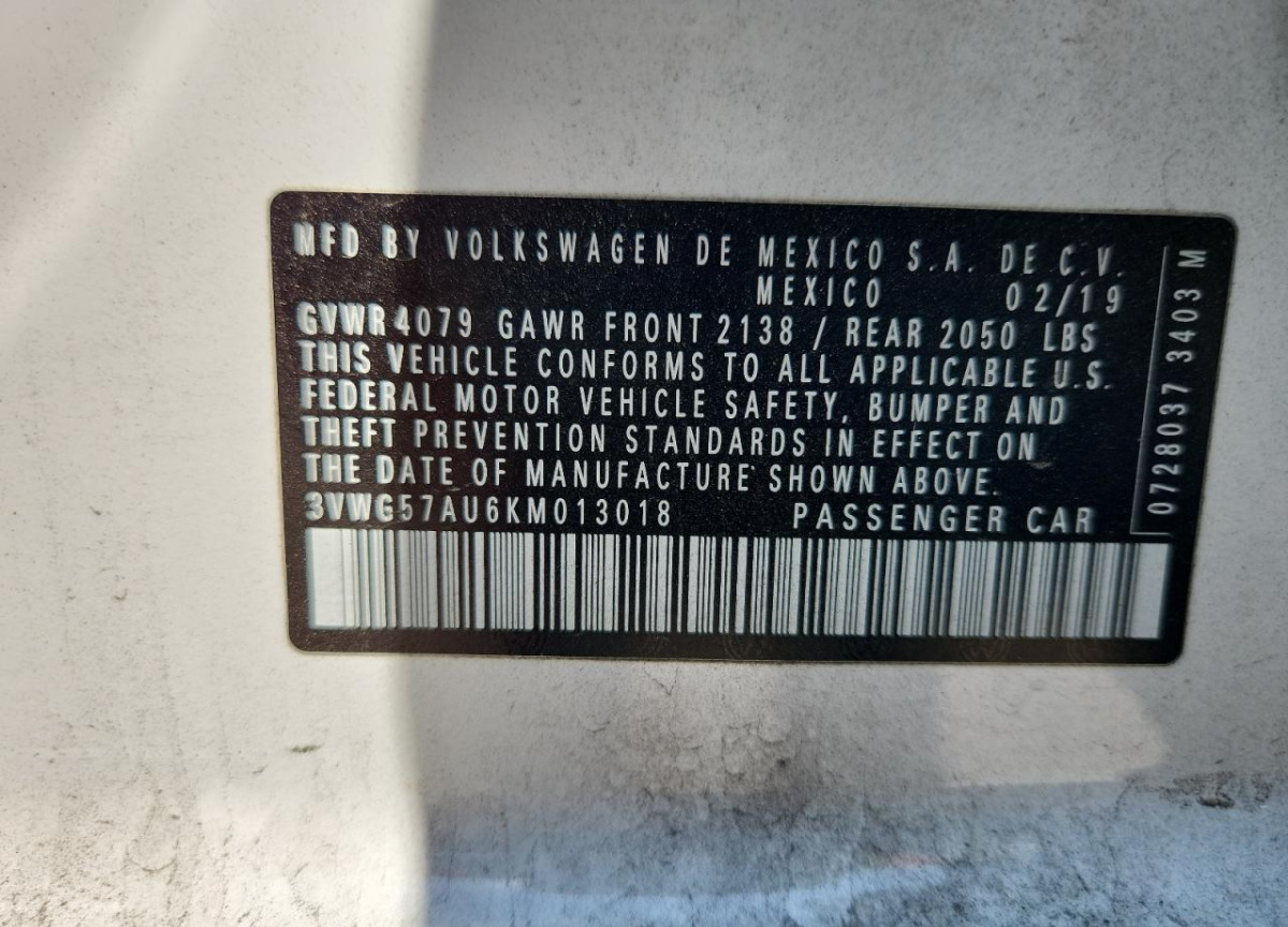 VIN:3VWG57AU6KM013018